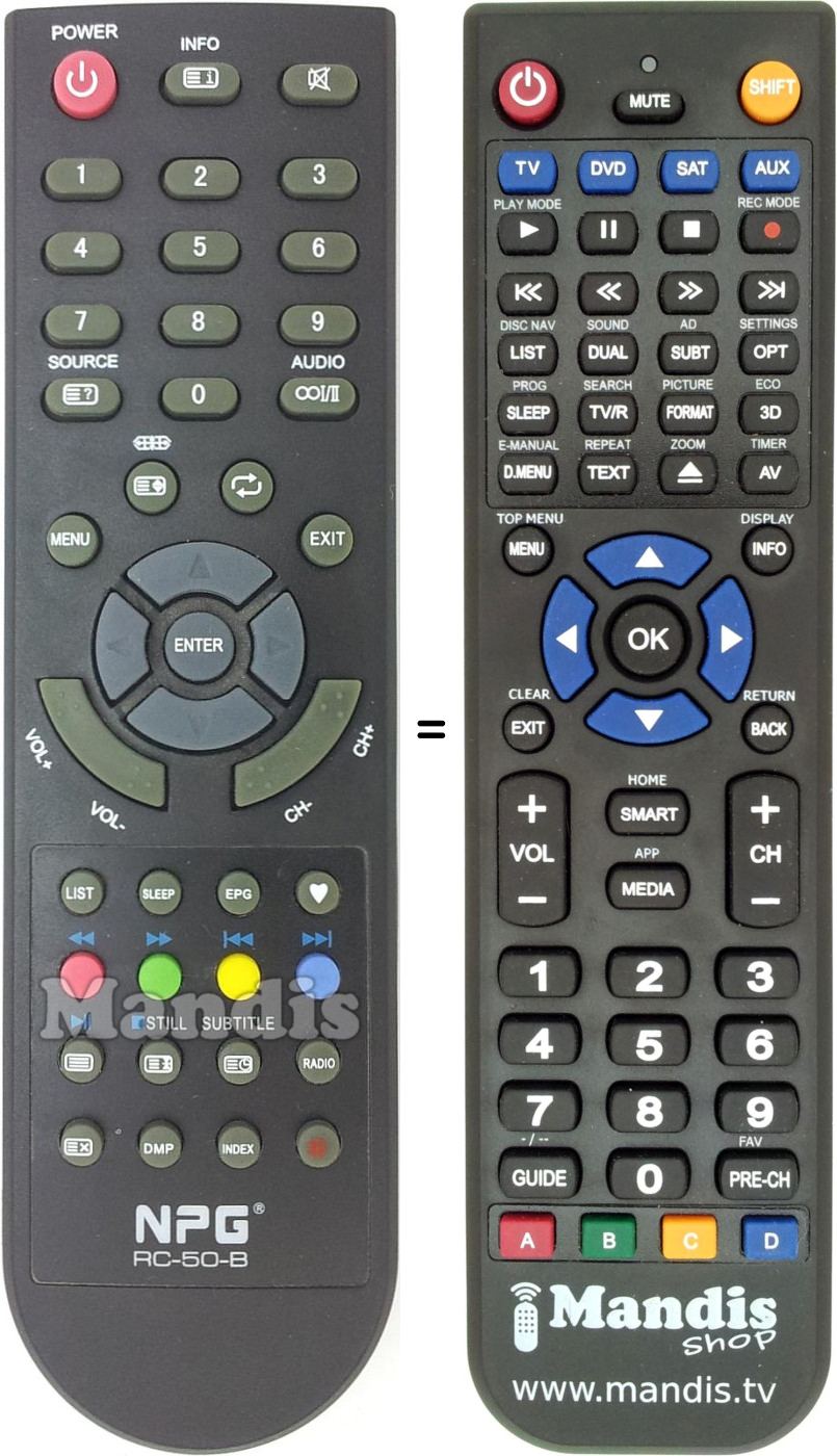 Início > Marcas > Comandos à Distância Npg > Controle remoto para Npg RC-50-B