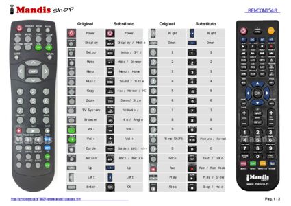 Um documento está incluso para ajudá-lo a usar o novo controle remoto facilmente, mostrando a correspondência dos botões.