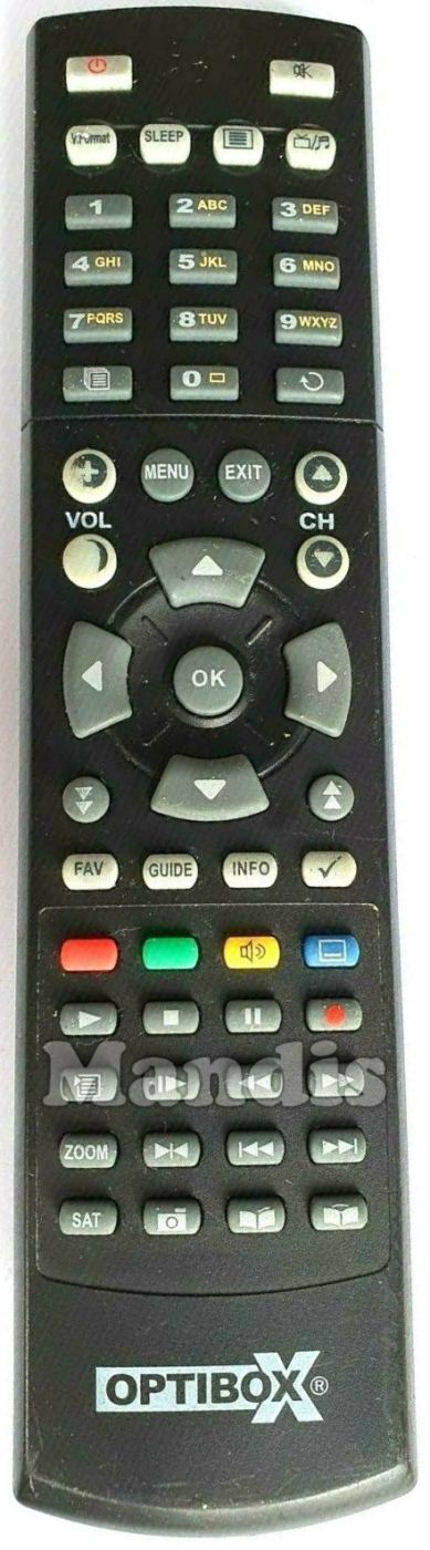 Comando à distância original Zebra da marca OPTIBOX. Trata-se de um modelo original de comando à distância.