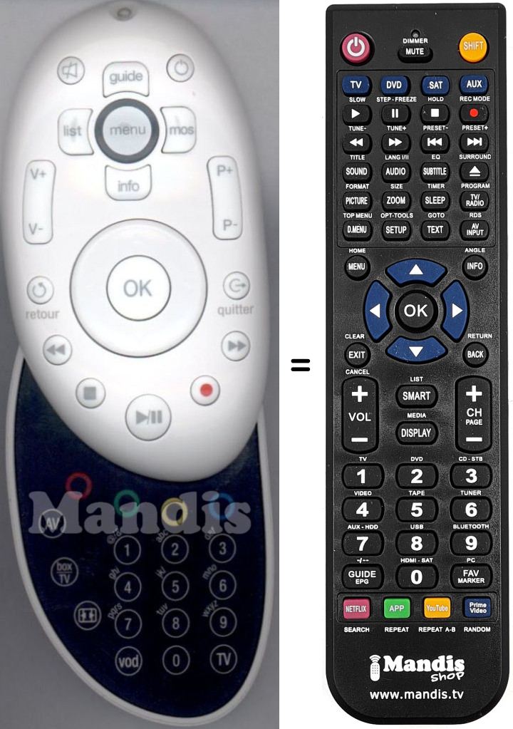 Comando à distância que substitui o original em todas as suas funções.