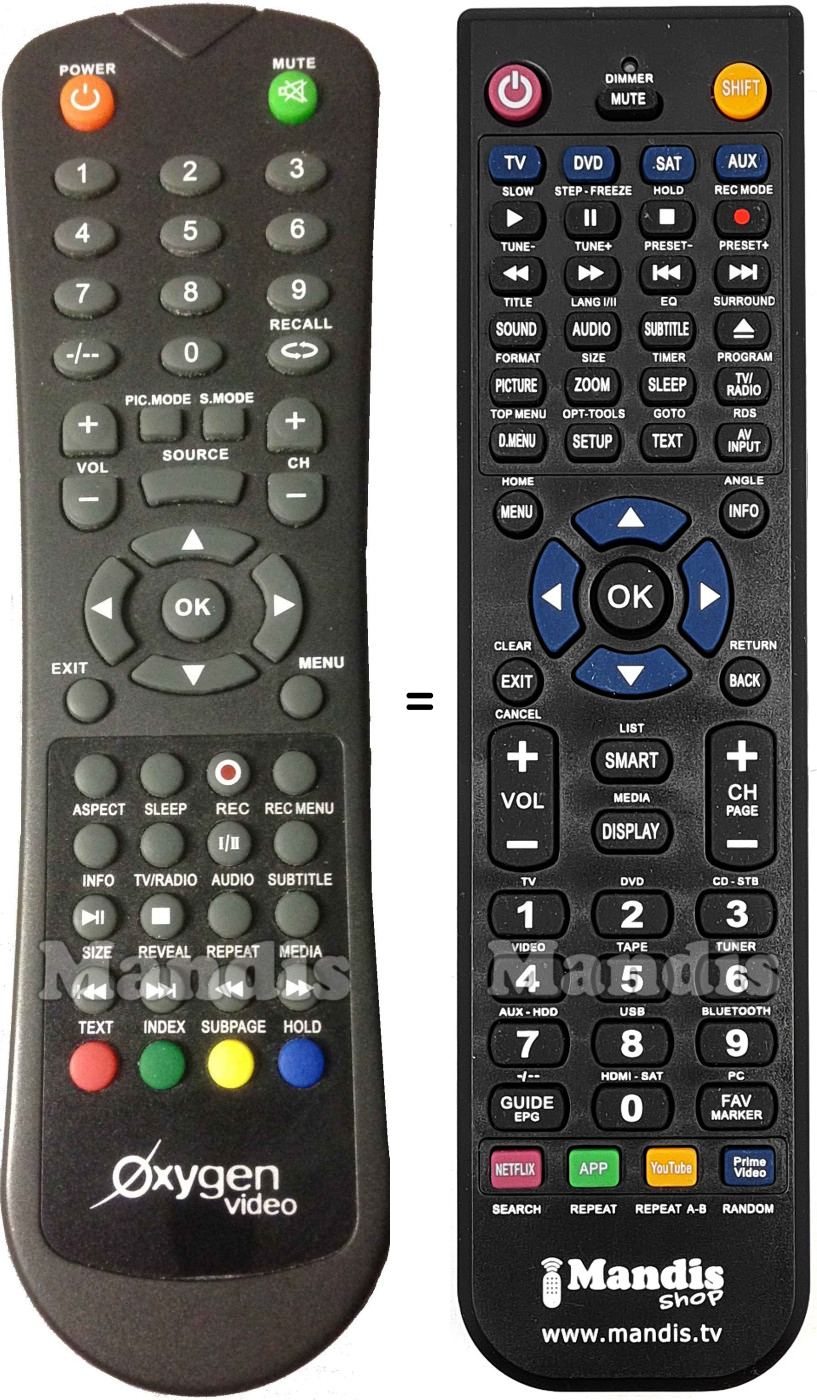 Abaixo, mostraremos a correspondência entre cada botão no controle remoto original e o botão que executa a mesma função no controle remoto de substituição. Em alguns casos, pode ser necessário pressionar a tecla SHIFT antes de pressionar outro botão para realizar determinadas ações. Essas funções adicionais geralmente não são amplamente utilizadas e são incluídas para facilitar o entendimento do controle remoto de substituição, ou porque o controle remoto original tem mais botões do que seu equivalente.