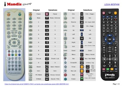 Um documento está incluso para ajudá-lo a usar o novo controle remoto facilmente, mostrando a correspondência dos botões.