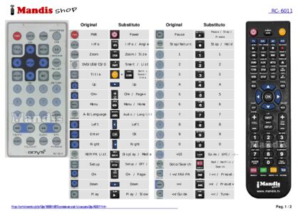 Este comando substitui completamente o seu RC-6011 e oferece todas as funções do original.