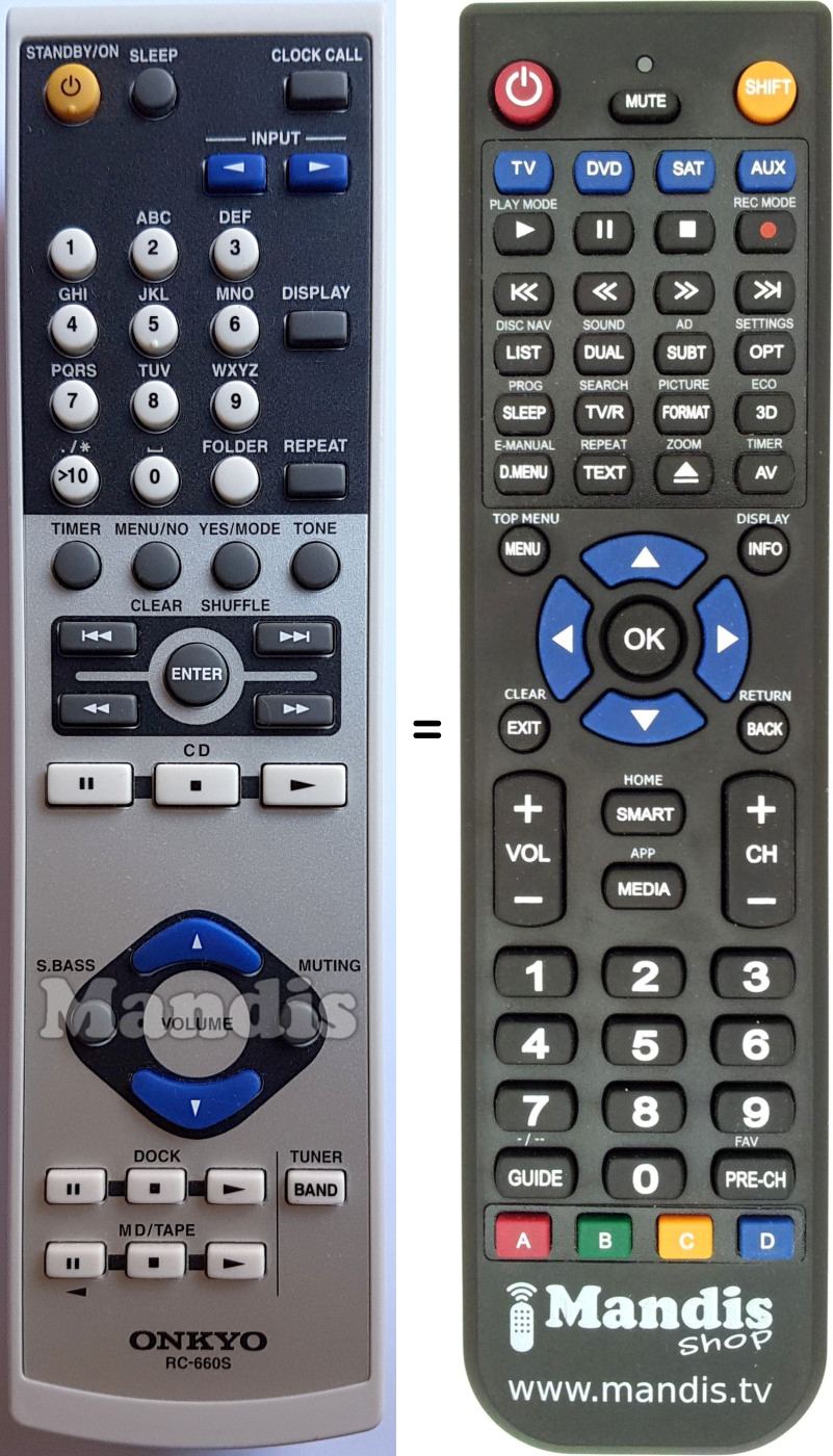 Início > Marcas > Comandos à Distância Onkyo > Controle remoto para Onkyo RC-660S