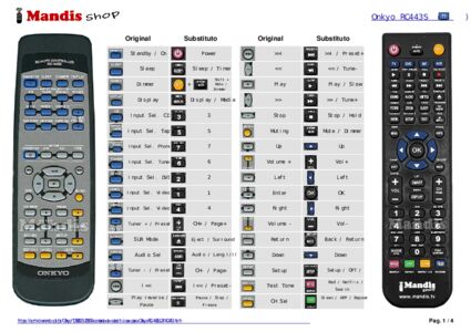 Este controle remoto executa todas as funções do controle remoto original: Standby / On, Sleep, Dimmer, Display, CD, Input Tape, Slector Phono, Tuner, DVD, Video 1, Video 2, SUR. Mode, SW Mode, Audio Sel, Tuner + / Preset +, Tuner - / Preset -, Mode Standby / On, Mode DVD, Mode CD, Mode Tape, I<<, >>I, Play Reverse / Pause, <<, Play, >>, Stop, Disc, Muting, Top Menu, Menu, Up, Right, Down, Left, Enter, Volume +, Volume -, Return, Setup, Test Tone, CH Sel, Level -, Level +