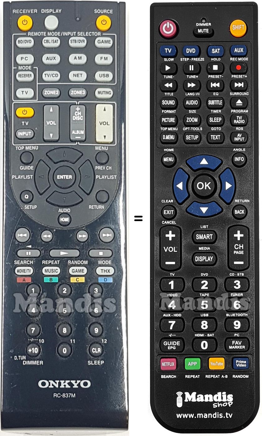 Início > Marcas > Comandos à Distância Onkyo > Controle remoto para Onkyo RC-837M