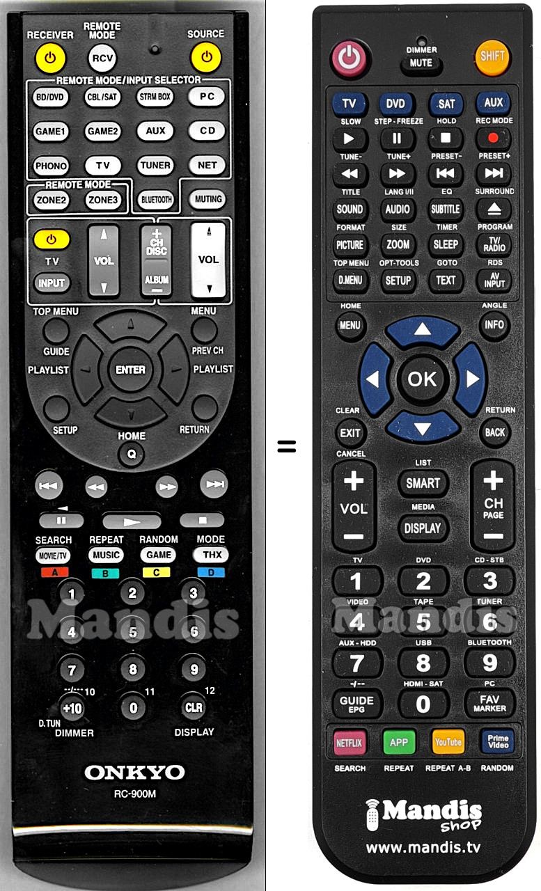 Início > Marcas > Comandos à Distância Onkyo > Controle remoto para Onkyo RC-900M