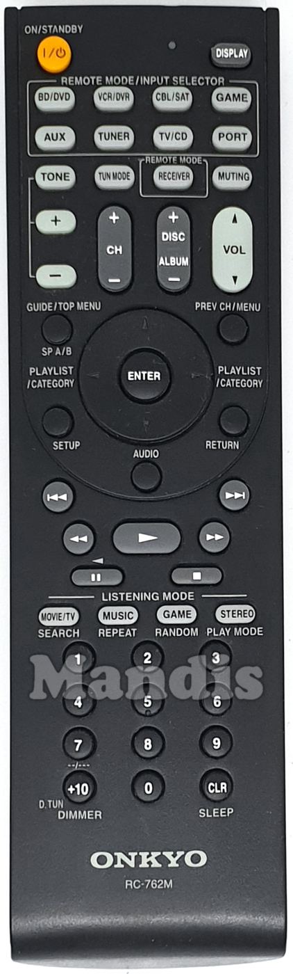 Comando à distância original RC-762M (24140762) que serve para sistema hi-fi da marca Onkyo. Trata-se de um modelo original de comando à distância.