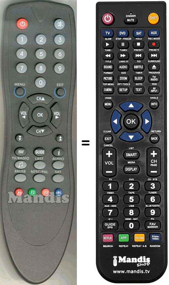 Comando à distância que substitui o original DVB3001R em todas as suas funções.