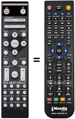 Abaixo, mostraremos a correspondência entre cada botão no controle remoto original e o botão que executa a mesma função no controle remoto de substituição. Em alguns casos, pode ser necessário pressionar a tecla SHIFT antes de pressionar outro botão para realizar determinadas ações. Essas funções adicionais geralmente não são amplamente utilizadas e são incluídas para facilitar o entendimento do controle remoto de substituição, ou porque o controle remoto original tem mais botões do que seu equivalente.