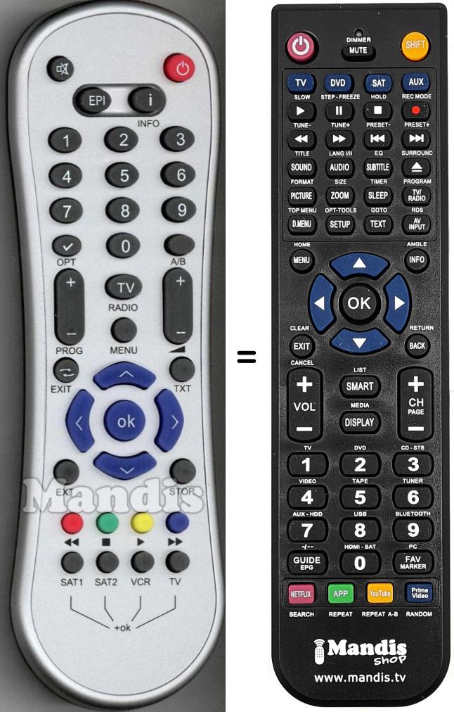 Comando à distância que substitui o original Orbitech003 em todas as suas funções.
