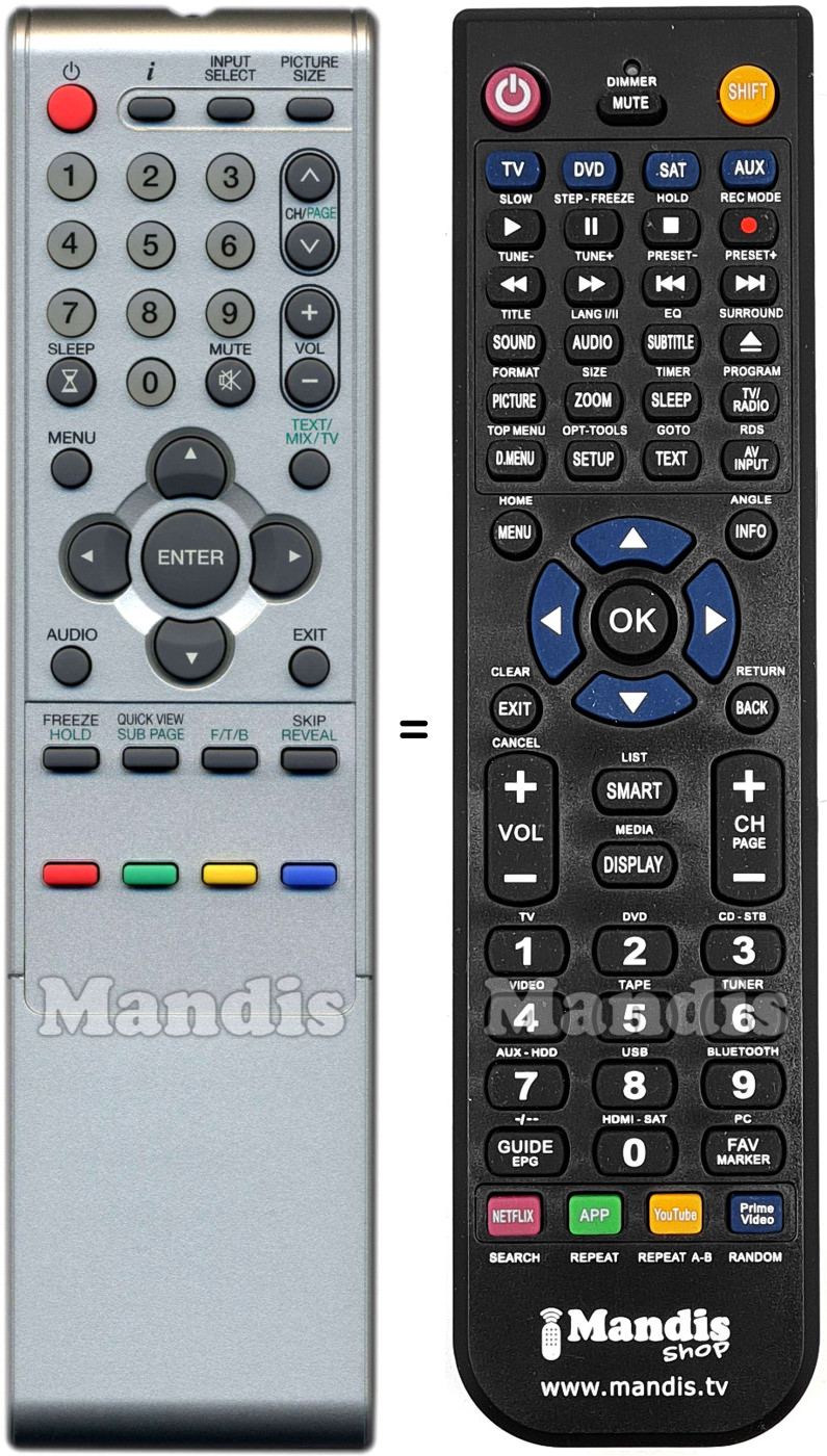 Um documento está incluso para ajudá-lo a usar o novo controle remoto facilmente, mostrando a correspondência dos botões.