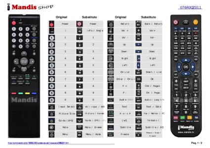 Um documento está incluso para ajudá-lo a usar o novo controle remoto facilmente, mostrando a correspondência dos botões.