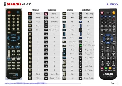 Abaixo, mostraremos a correspondência entre cada botão no controle remoto original e o botão que executa a mesma função no controle remoto de substituição. Em alguns casos, pode ser necessário pressionar a tecla SHIFT antes de pressionar outro botão para realizar determinadas ações. Essas funções adicionais geralmente não são amplamente utilizadas e são incluídas para facilitar o entendimento do controle remoto de substituição, ou porque o controle remoto original tem mais botões do que seu equivalente.