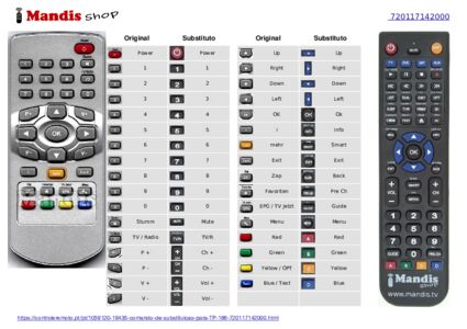 Abaixo, mostraremos a correspondência entre cada botão no controle remoto original e o botão que executa a mesma função no controle remoto de substituição. Em alguns casos, pode ser necessário pressionar a tecla SHIFT antes de pressionar outro botão para realizar determinadas ações. Essas funções adicionais geralmente não são amplamente utilizadas e são incluídas para facilitar o entendimento do controle remoto de substituição, ou porque o controle remoto original tem mais botões do que seu equivalente.