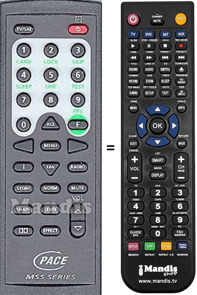 Comando à distância que substitui o original Pace003 em todas as suas funções.