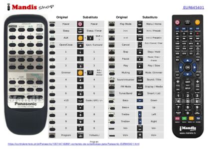 Um documento está incluso para ajudá-lo a usar o novo controle remoto facilmente, mostrando a correspondência dos botões.