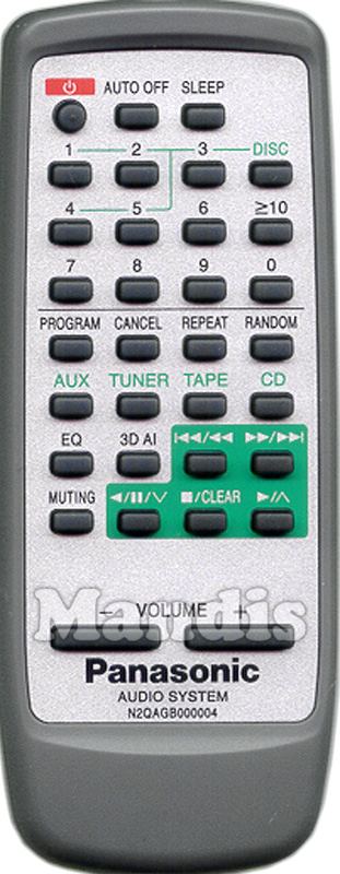 Comando à distância original N2QAGB000004 que serve para sistema hi-fi da marca Panasonic. Trata-se de um modelo original de comando à distância.