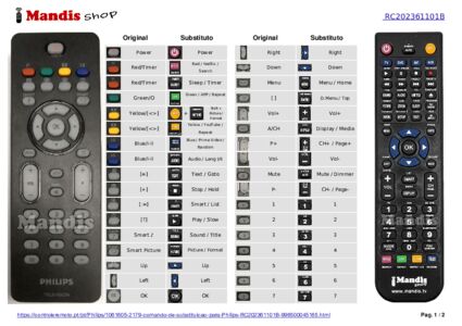 Um documento está incluso para ajudá-lo a usar o novo controle remoto facilmente, mostrando a correspondência dos botões.