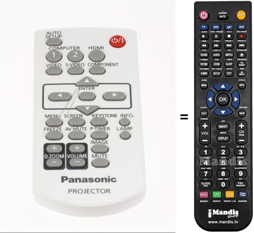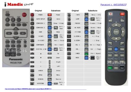 Abaixo, mostraremos a correspondência entre cada botão no controle remoto original e o botão que executa a mesma função no controle remoto de substituição. Em alguns casos, pode ser necessário pressionar a tecla SHIFT antes de pressionar outro botão para realizar determinadas ações. Essas funções adicionais geralmente não são amplamente utilizadas e são incluídas para facilitar o entendimento do controle remoto de substituição, ou porque o controle remoto original tem mais botões do que seu equivalente.