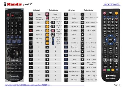 Um documento está incluso para ajudá-lo a usar o novo controle remoto facilmente, mostrando a correspondência dos botões.