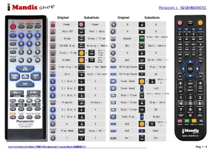Início > Marcas > Comandos à Distância Panasonic > Controle remoto para Panasonic N2QAHB000053 > Distribuição interativa de teclas Panasonic N2QAHB000053