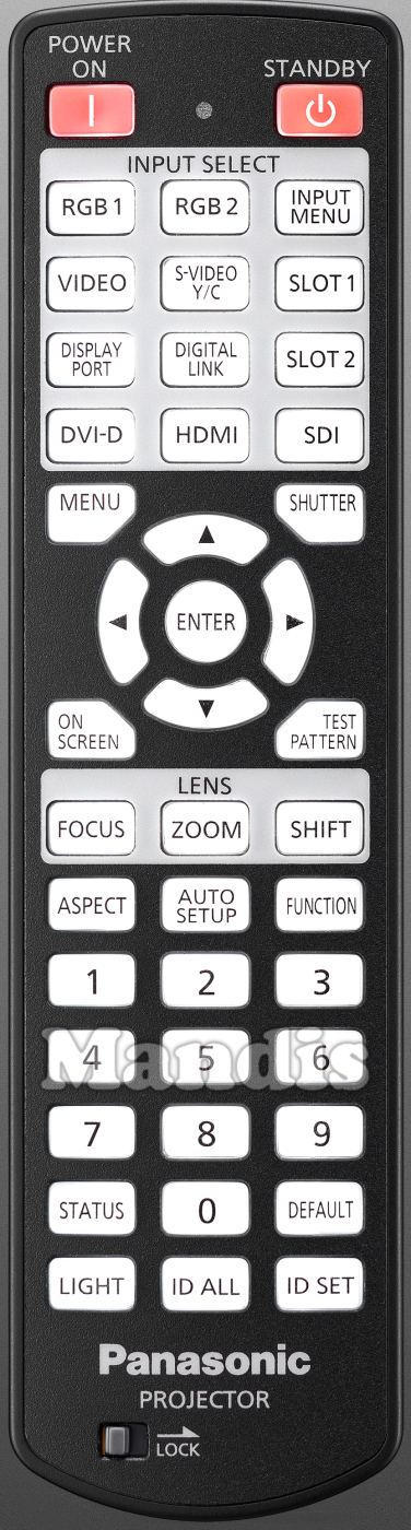 Comando à distância original N2QAYB001052 que serve para projetores da marca Panasonic.