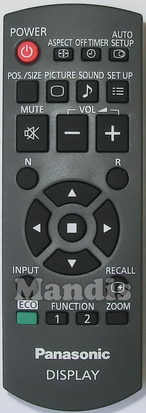 Power, [+]/Aspect, Off Timer, Auto Setup, Pos/Size, [ ]/Picture, ♪/Sound, Setup, Mute, Vol-, Vol+, N, R, Input, Recall, Up, Down, Left, Right, Stop, Eco, Function 1, Function 2, Zoom
