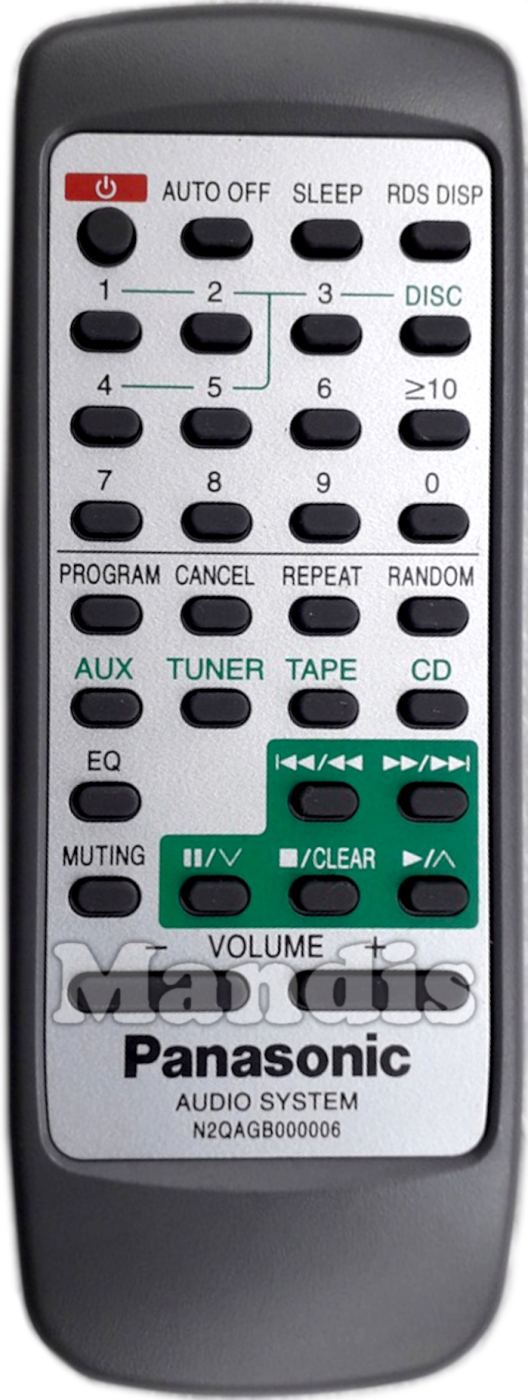 Comando à distância original N2QAGB000006 que serve para equipamentos de som da marca Panasonic. Trata-se de um modelo original de comando à distância.