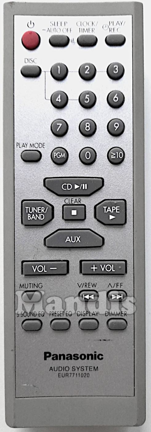 Comando à distância original EUR7711020 que serve para sistema hi-fi da marca Panasonic. Trata-se de um modelo original de comando à distância.