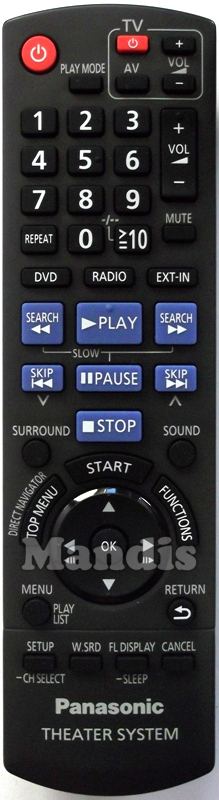 Comando à distância original N2QAYB000456 que serve para home theatre da marca Panasonic. Trata-se de um modelo original de comando à distância.