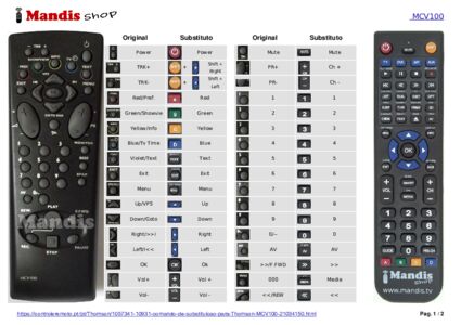 Abaixo, mostraremos a correspondência entre cada botão no controle remoto original e o botão que executa a mesma função no controle remoto de substituição. Em alguns casos, pode ser necessário pressionar a tecla SHIFT antes de pressionar outro botão para realizar determinadas ações. Essas funções adicionais geralmente não são amplamente utilizadas e são incluídas para facilitar o entendimento do controle remoto de substituição, ou porque o controle remoto original tem mais botões do que seu equivalente.