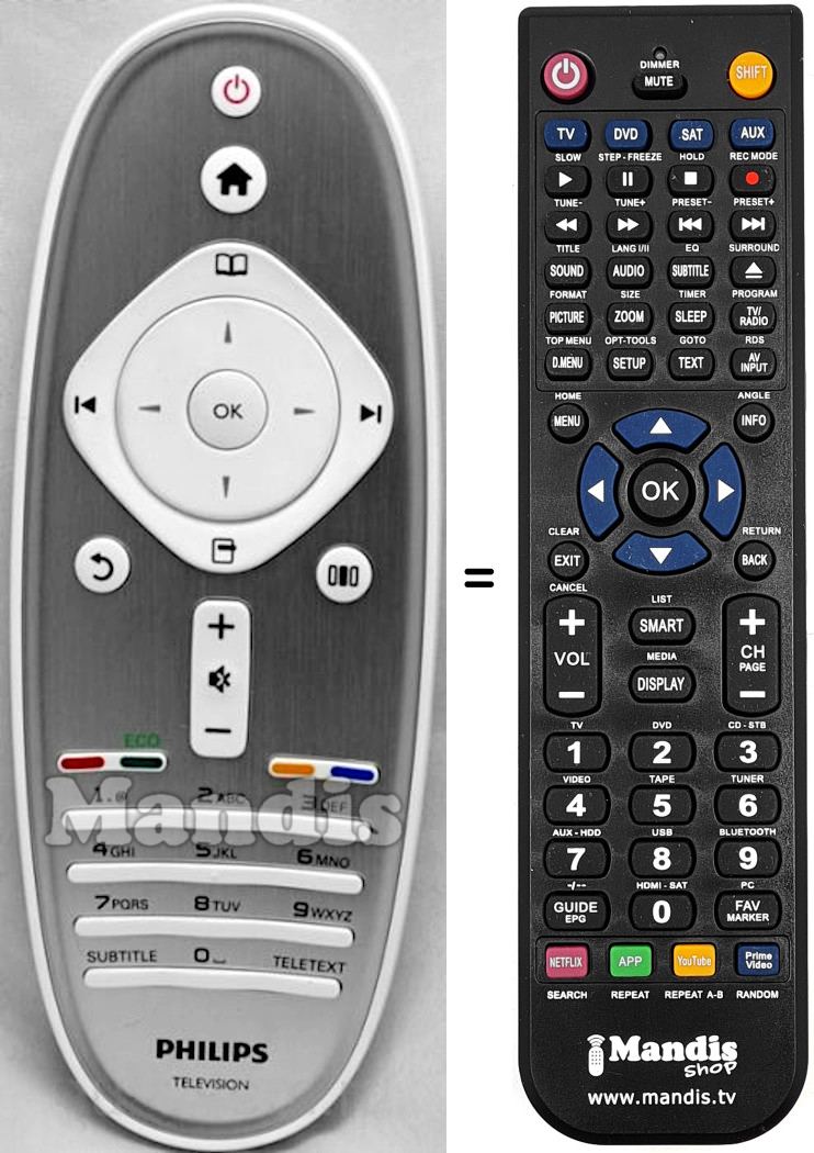 Início > Marcas > Comandos à Distância Philips > Controle remoto para PHILIPS 242254990285