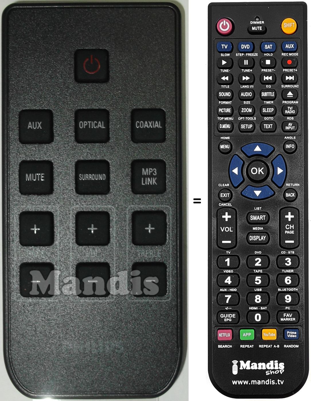 Comando à distância que substitui o original em todas as suas funções.