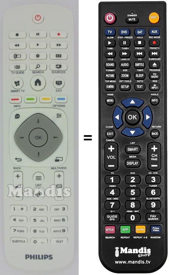 Comando à distância que substitui o original em todas as suas funções.