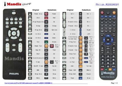 Este controle remoto executa todas as funções do controle remoto original: Power, Disc, Tun, Aux, Tape, Rep All, Shuf, Sleep, Clock / Display, Timer On / Off, Timer, Up / >>, Down / <<, Right / >I, Left / I<, Play / Pause, Prog, DBB, Preset +, Preset -, Stop, Mute, Vol +, Vol -