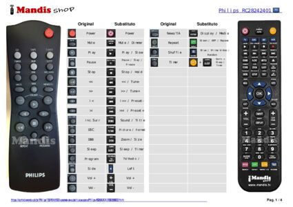 Um documento está incluso para ajudá-lo a usar o novo controle remoto facilmente, mostrando a correspondência dos botões.