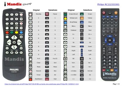 Início > Marcas > Comandos à Distância Philips > Controle remoto para PHILIPS RC1123333/01 (862266712101)