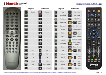 Um documento está incluso para ajudá-lo a usar o novo controle remoto facilmente, mostrando a correspondência dos botões.