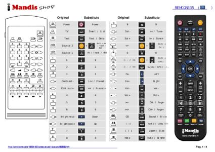 Um documento está incluso para ajudá-lo a usar o novo controle remoto facilmente, mostrando a correspondência dos botões.