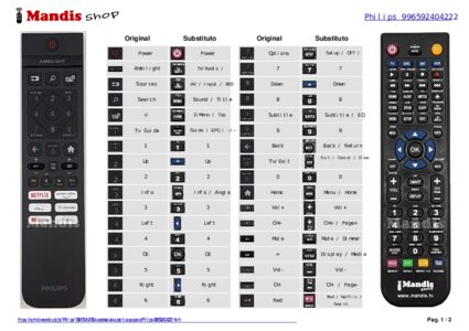 Um documento está incluso para ajudá-lo a usar o novo controle remoto facilmente, mostrando a correspondência dos botões.