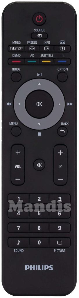 Início > Marcas > Comandos à Distância Philips > Controle remoto para Philips 221TE2L > Distribuição interativa de teclas Philips 221TE2L