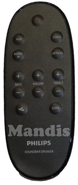 Comando à distância original Soundbar Speaker (996510059208) da marca Philips. Trata-se de um modelo original de comando à distância.