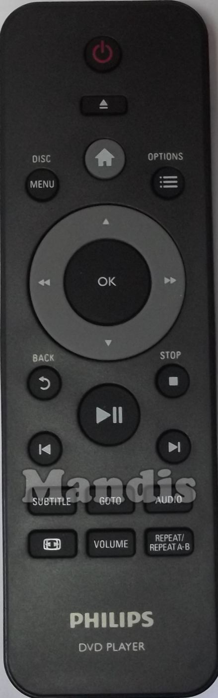 Power, Open/Close, Home, Menu/Disc, Options, Up, Down, >>, <, OK, Back, Stop, Play/Pause, I<, >I, Subtitle, Goto, Audio, [<>], Volume, Repeat/Repeat A-B