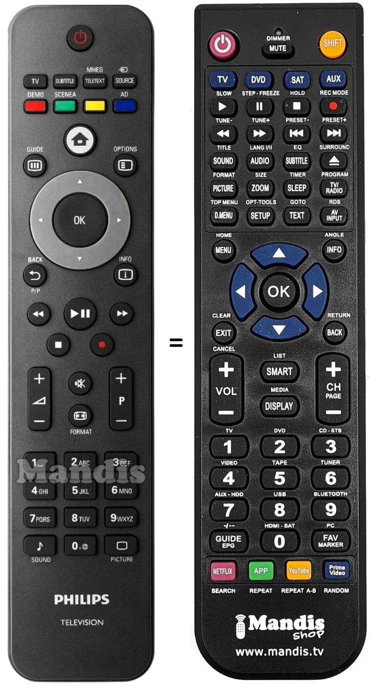 Comando à distância que substitui o original em todas as suas funções.