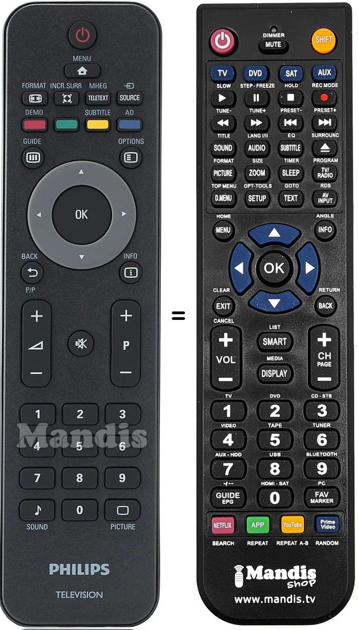 Comando à distância que substitui o original em todas as suas funções.