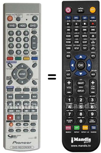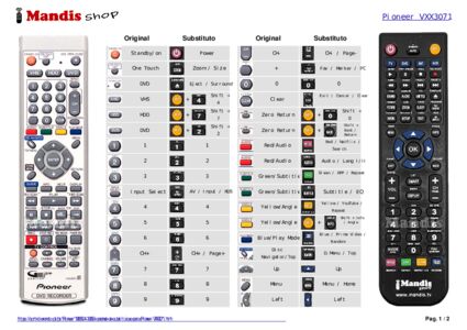 Abaixo, mostraremos a correspondência entre cada botão no controle remoto original e o botão que executa a mesma função no controle remoto de substituição. Em alguns casos, pode ser necessário pressionar a tecla SHIFT antes de pressionar outro botão para realizar determinadas ações. Essas funções adicionais geralmente não são amplamente utilizadas e são incluídas para facilitar o entendimento do controle remoto de substituição, ou porque o controle remoto original tem mais botões do que seu equivalente.
