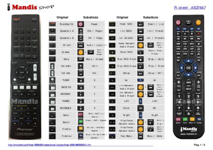 Este controle remoto substitui a maioria das funções do seu AXD7647 (8300764700010-IL). Não é um controle remoto universal, mas sim uma cópia com a maioria dos botões e funções do seu original.