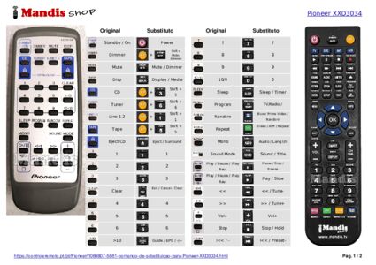 Abaixo, mostraremos a correspondência entre cada botão no controle remoto original e o botão que executa a mesma função no controle remoto de substituição. Em alguns casos, pode ser necessário pressionar a tecla SHIFT antes de pressionar outro botão para realizar determinadas ações. Essas funções adicionais geralmente não são amplamente utilizadas e são incluídas para facilitar o entendimento do controle remoto de substituição, ou porque o controle remoto original tem mais botões do que seu equivalente.