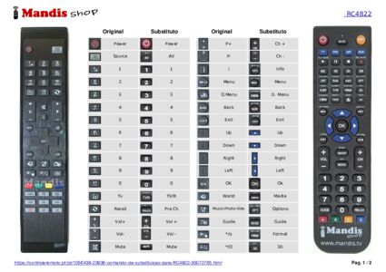 Um documento está incluso para ajudá-lo a usar o novo controle remoto facilmente, mostrando a correspondência dos botões.